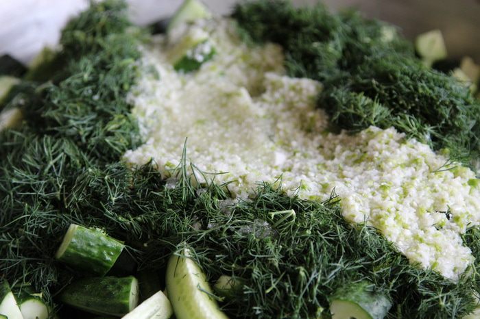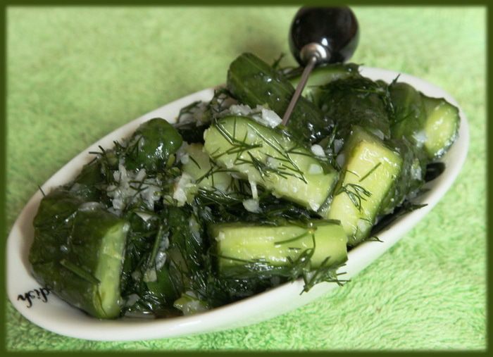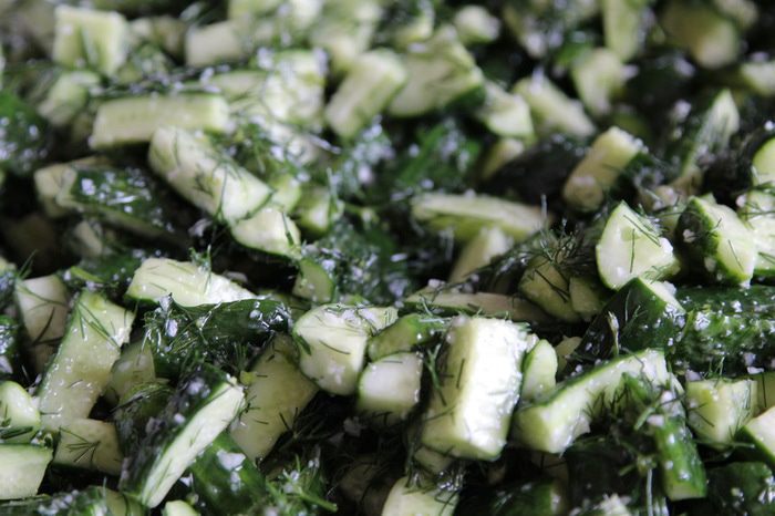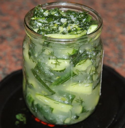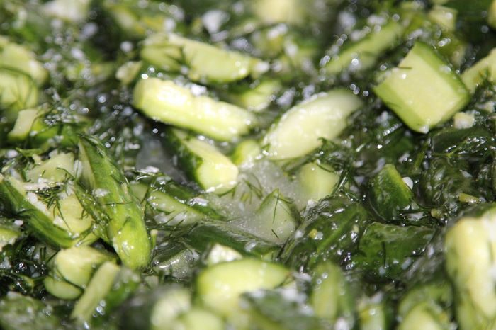 Снова хорошо вымешиваем и оставляем на 4 часа, периодически помешиваем, чтобы огурцы хорошо промариновались.