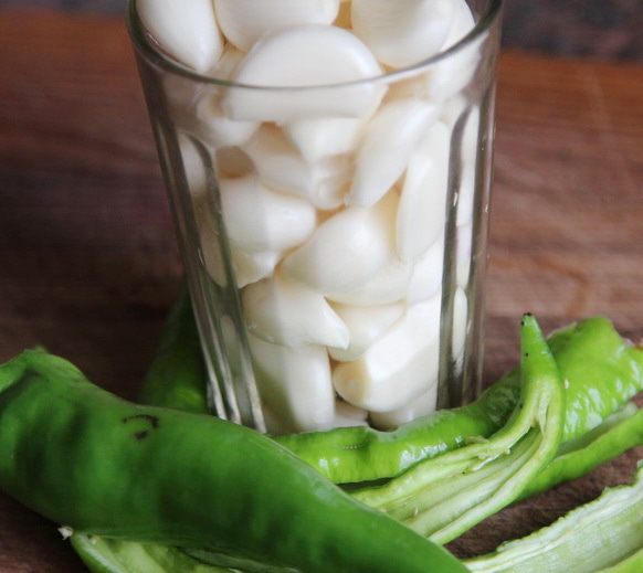 Отправляем в емкость измельченные чеснок и перец, добавляем сахар, соль, уксус и перемешиваем. Накрываем крышкой и оставляем настаиваться.