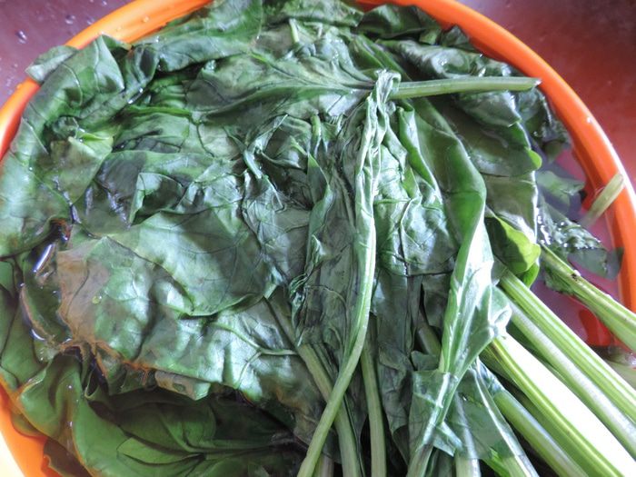 Шпинат зальем кипятком и оставим на 3-5 минут, затем откинем его на дуршлаг, чтоб стекла жидкость.