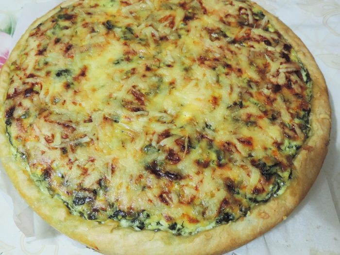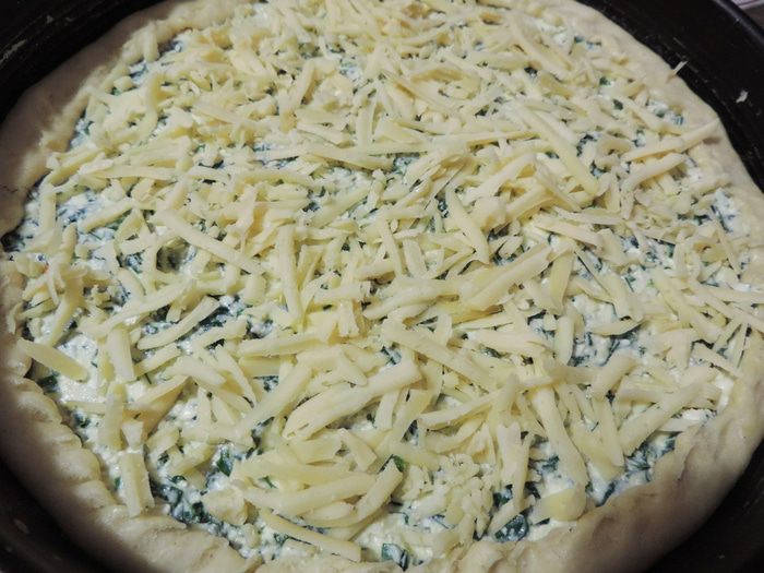 Отправляем пирог в разогретую до 180 градусов духовку на 30-35 минут. Следите, чтоб сырная корочка не подгорела, но зарумянилась.