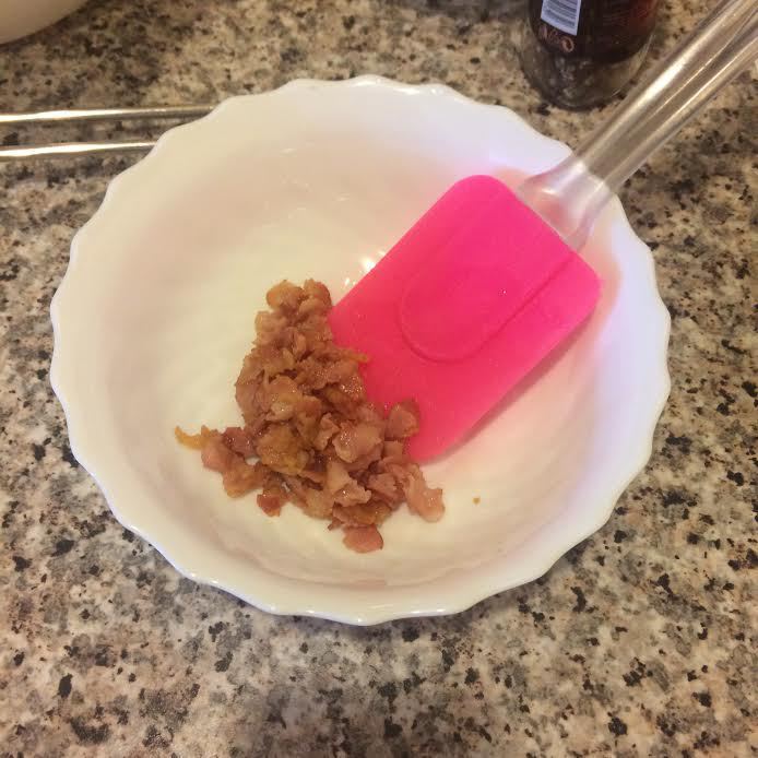Сыр натереть на мелкой терке. Бекон мелко нарезать.