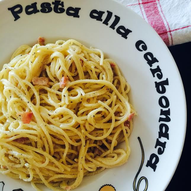 Пасту алла карбонара придумали в середине 20 века. Паста алла карбонара является традиционной для итальянского региона Лацио. Карбонару готовят с гуанчиалле и соусом из яйц, пармезана и пекорино романо. В других странах в соус для корбонары добавляют сливки, а гуанчиалле заменяют беконом.