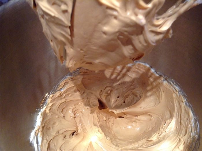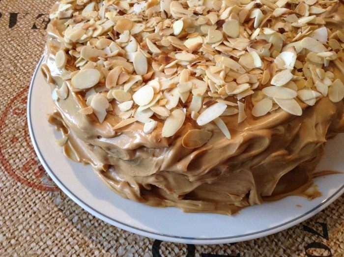 Смешать маскарпоне и сгущенку (всегда покупаю белорусскую). добавить в крем 20 г. миндальных лепестков.