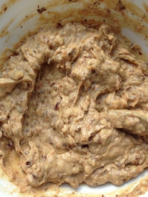 Соединим тесто с финиками (с водой) и орехами. Вымесим.