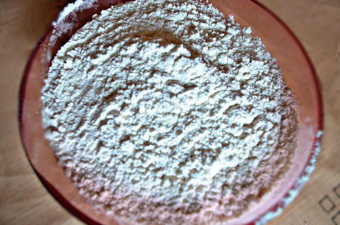 Просейте муку, добавьте соду, соль, разрыхлитель.