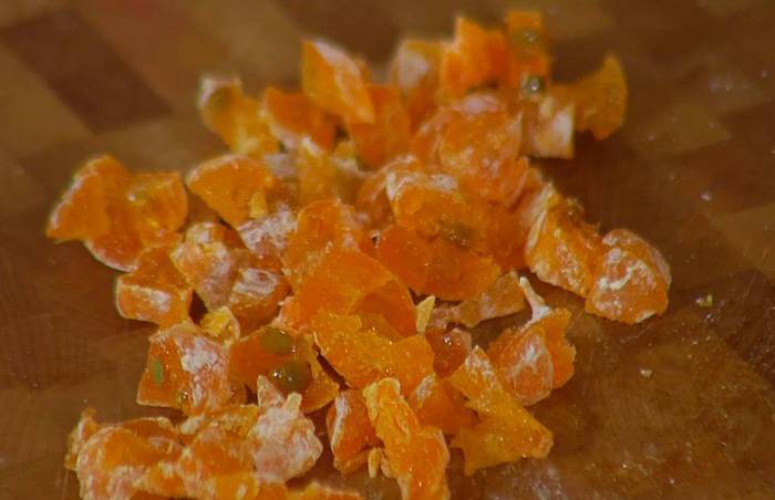 Крупные цукаты порезать на кусочки.