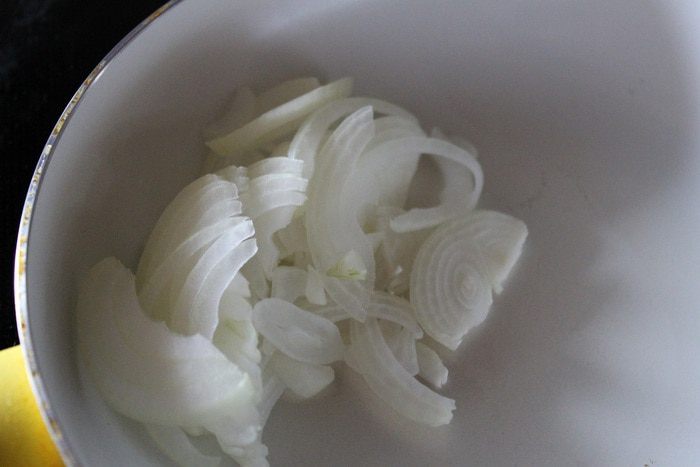 Лук нарезать тонкими полукольцами.