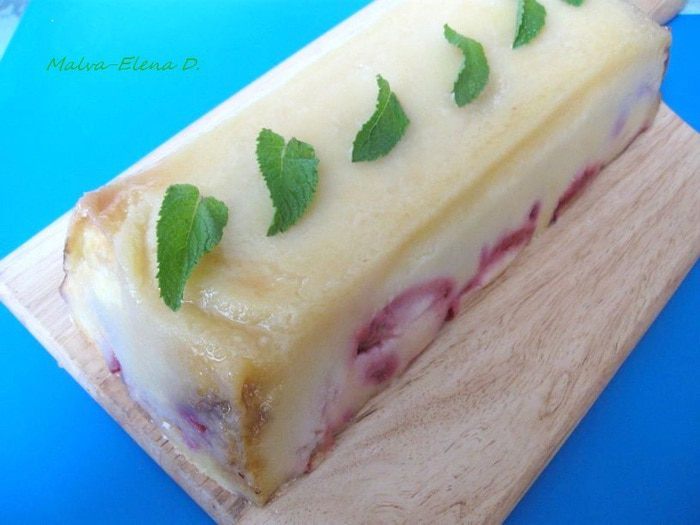 Хочу вам показать, что десерт хорошо держит форму. Перевернула форму после охлаждения в холодильнике, он у меня от этой процедуры не пострадал. Подают его, конечно, иначе: ягодами или фруктами вверх.