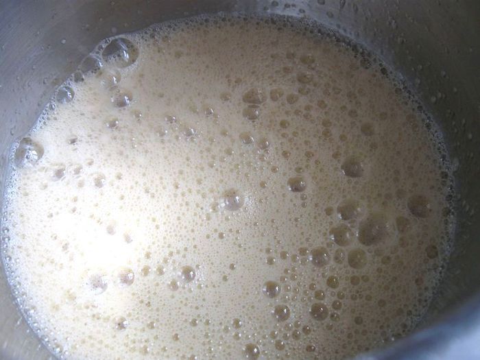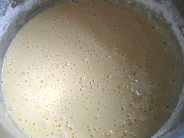 В результате должна получиться масса, похожая на тесто для блинов.