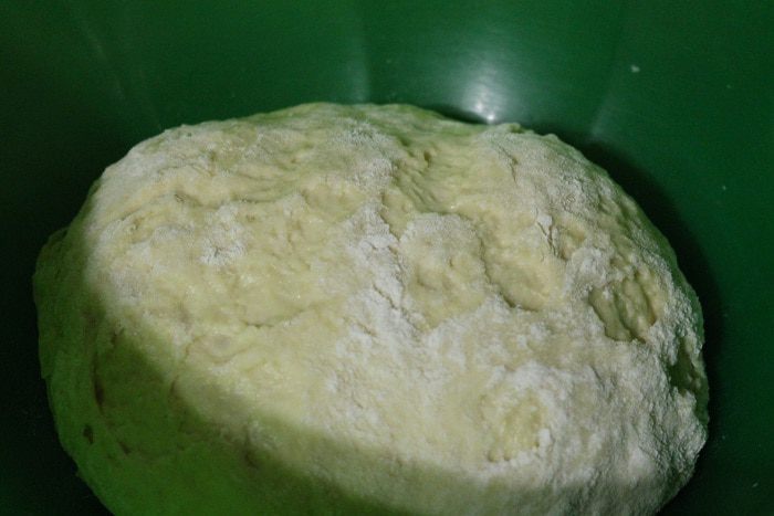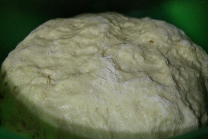 Тесто должно получится мягкое и не липнуть к рукам. Перекладываем его в чистую миску, накрываем полотенцем и оставляем на час в теплом месте.