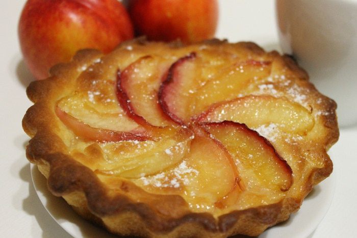Формочки смазываем сливочным маслом. Раскатываем кусочек теста нужного диаметра, кладем в формочку, пальчиками распределяем по дну и краям. Сверху выкладываем нектарины.