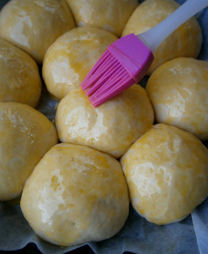 Подошедшие булочки смазать желтком.