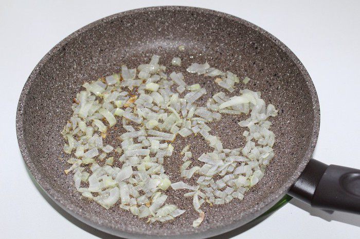 Мелко нарубленный репчатый лук, и потушить 1 минуту, до прозрачности.