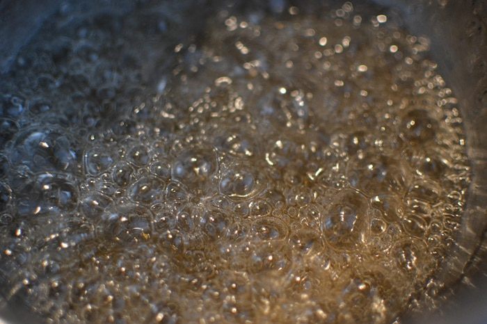 В широкой кастрюле смешать сахар с водой, варить на среднем огне