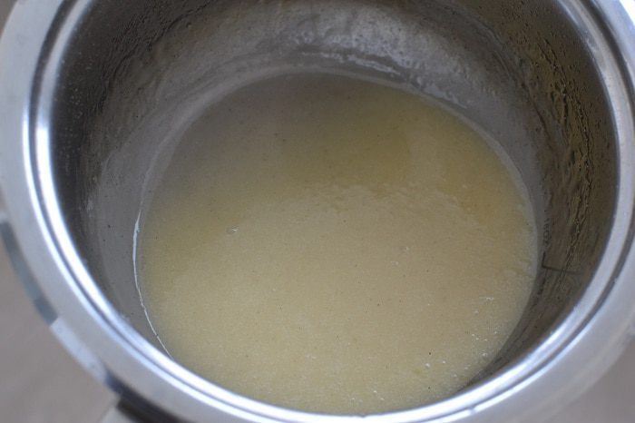 Снять карамель с огня и добавить масло «Домик в деревне», взбивая смесь венчиком.