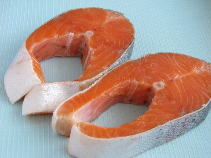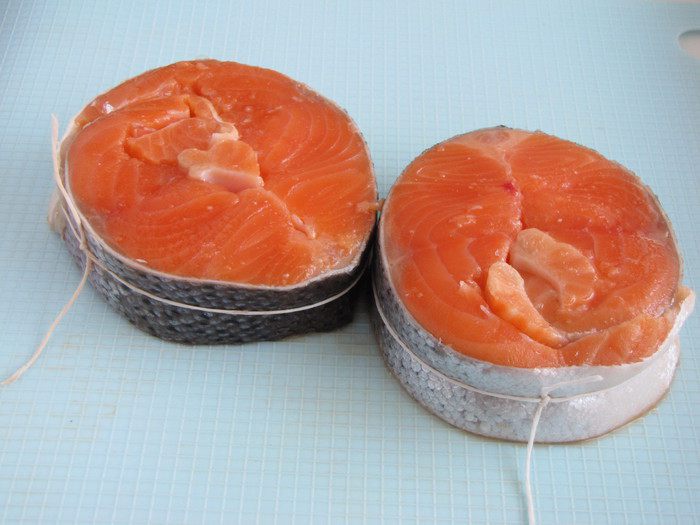 Стейки форели ополоснуть, обсушить бумажным полотенцем.