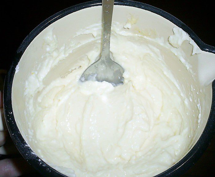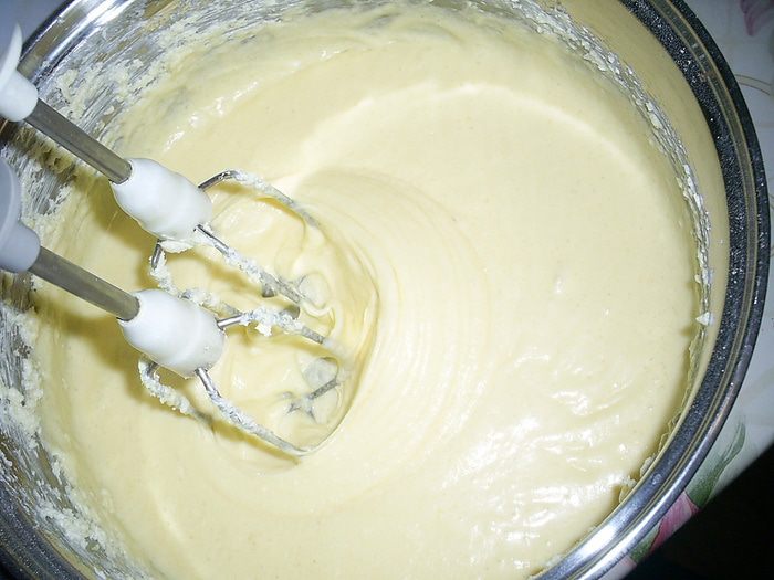 Нам понадобиться размягченное сливочное масло, которое без зазрения совести можно заменить таким же количеством сливочного маргарина. Размягченное масло или маргарин взбить, добавить сахар и ванилин, взбить еще раз. Затем не прекращая взбивания, добавляем по одному яйца с интервалом в минуту каждое.