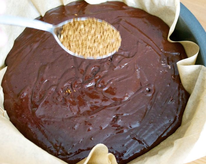 Сверху присыпать оставшейся ложкой растворимого кофе. И поставить выпекаться в разогретую духовку примерно на 20 минут. Готовность бисквита проверить деревянной шпажкой (должна выходить сухой из бисквита).