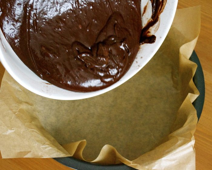 Переложить полученное тесто в форму для выпечки, застеленную пекарской бумагой.