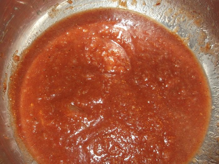 Смешиваем яблочное пюре готовое (можно детское питание) с кетчупом, коричневый сахар, соевый соус,перец,паприка,корица,чеснок,выдавливаем соус и всё перемешиваем.