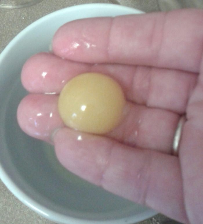 Для этого, аккуратно разбиваем и выливаем яйцо в кружку, затем рукой забираем желток (это не сложно).