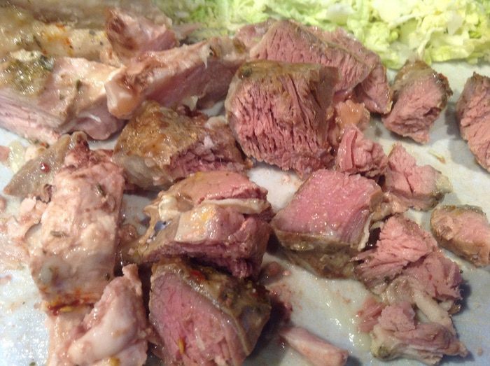 Капусту я тонко нашинковала. Джейми предлагает взять 8 листьев, удалить жесткие прожилки, слегка отварить и обсушить.