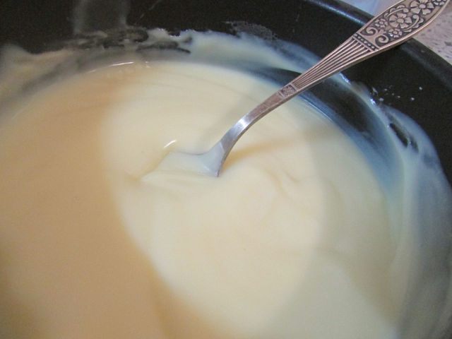 Сварить пудинг согласно инструкции на пачке. Вот такой густой должен получиться (только не кипятить!).