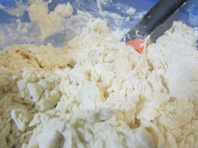 Затем всыпать муку.