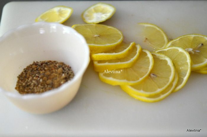 Шпажки предварительно отмочить 1-2 часа. Лимон порезать тонко. Смесь из сухих специй смешать в емкости.