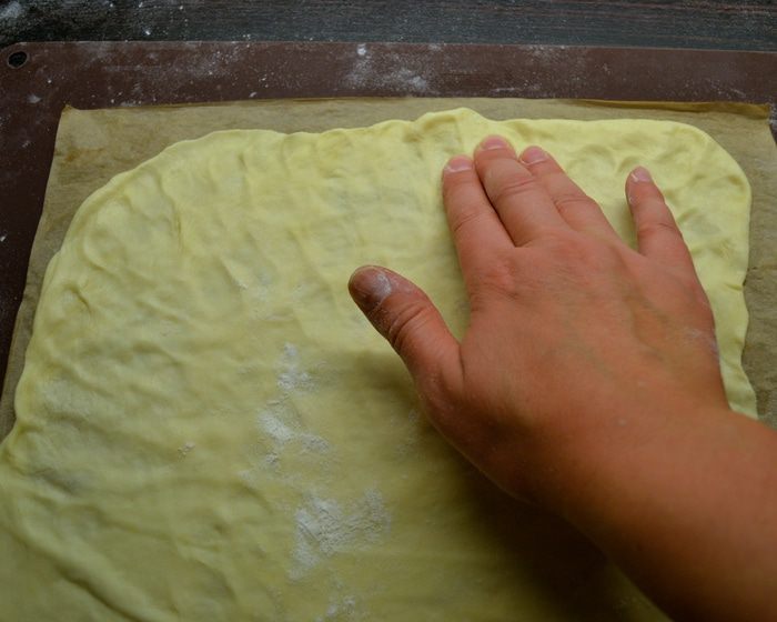 Завернуть тесто в пленку и убрать в холодильник минут на 30.