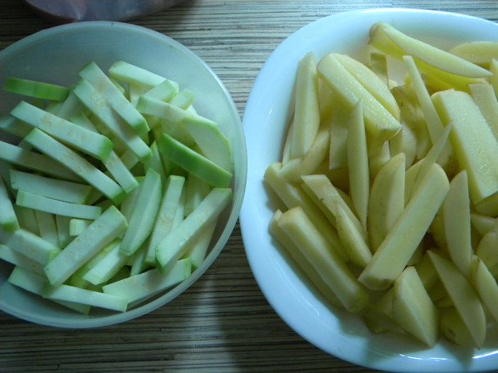 Предлагаю запеченый в духовке картофель с мясом,кабачком,морковью и луком.Украсить не успела так как все были очень голодныевырывали с руками!!!