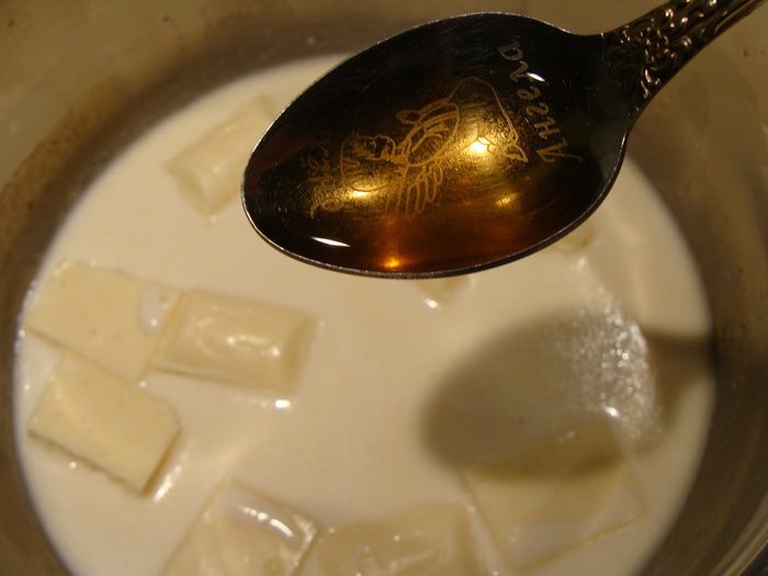 Добавляем сливки, ванильную эсенцию, поломанный шоколад, щепотку соли. Доводим до кипения. И сразу в чашки разливаем. Для образования воздушных пузырьков, наливаем молоко с некоторой высоты.