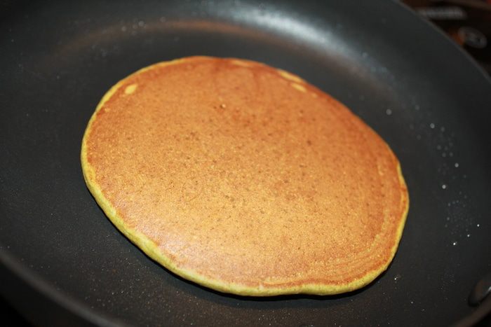 Смазать единожды сковородку маслом, больше смазывать нет необходимости. Выпекать блины под крышкой по 1,5-2 минутки с каждой стороны на среднем огне. Переворачиваются легко.