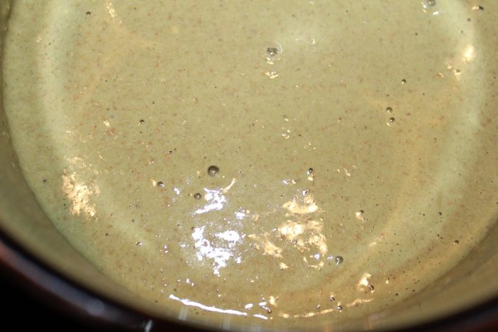 Оставить тесто отдохнутьна 20 минут. Оно получается сначала жидковатым, но позже загустеет.