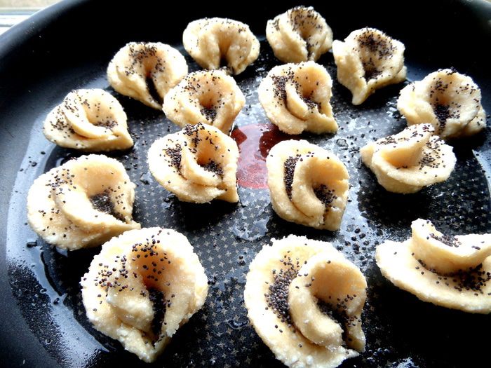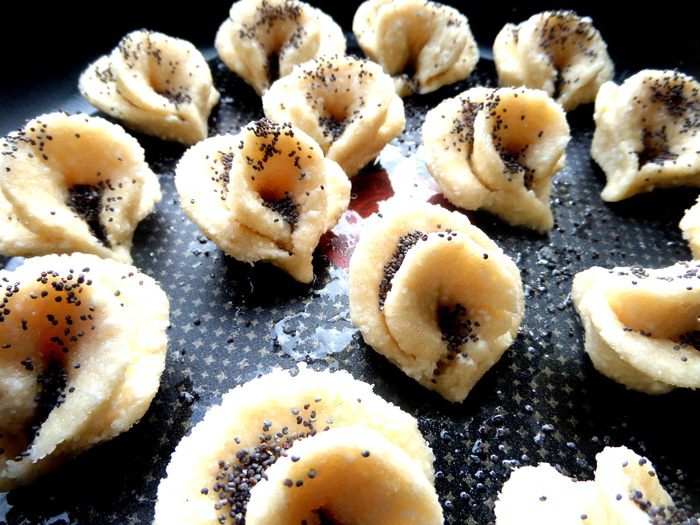 Далее мне захотелось чем-нибудь присыпать бутоны...Мак отлично подошёл к творожной выпечке,поэтому каждый цветочек присыпала по паре щепоток мака.