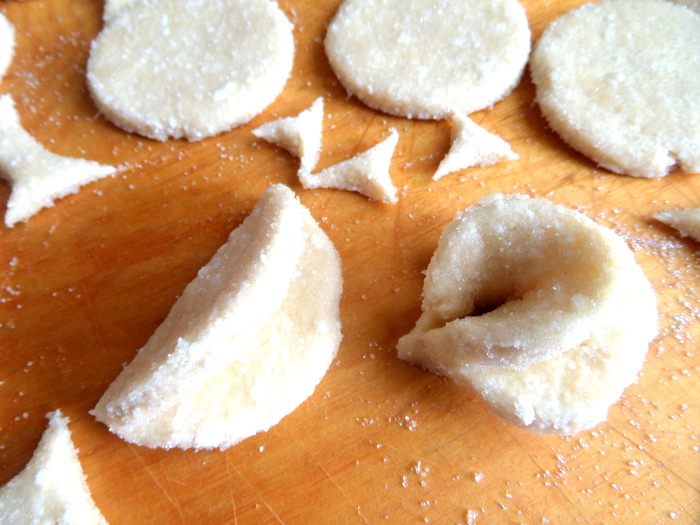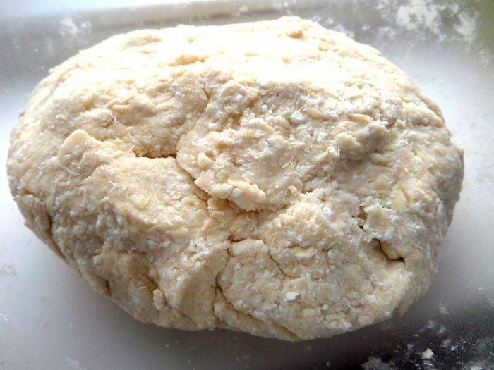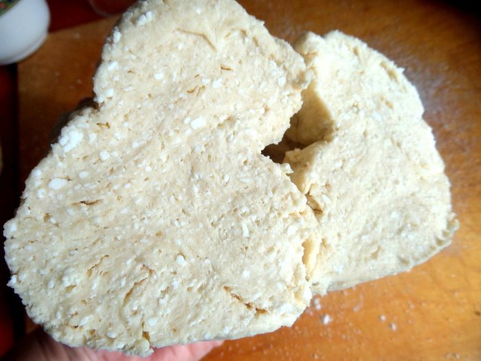 Обрезочки собираю и перемешиваю с общим комком теста,присыпав немного муки.