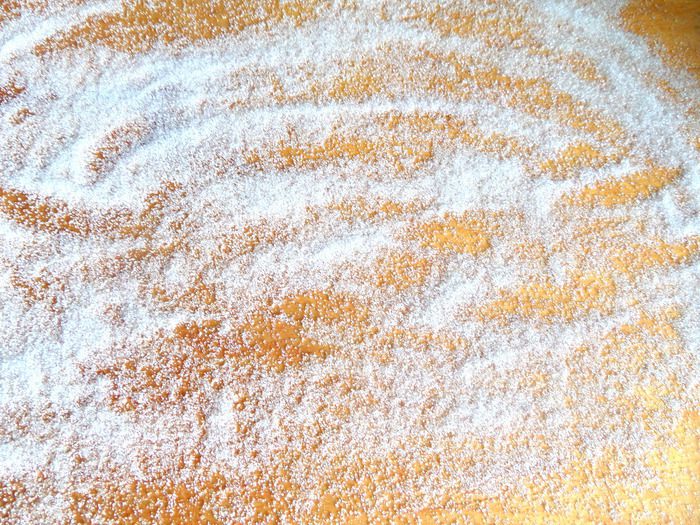 Кладём расплющенную лепёшку из теста,посыпаем сверху сахаром и начинаем раскатывать.