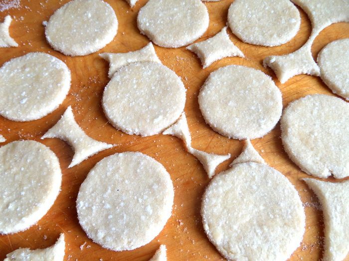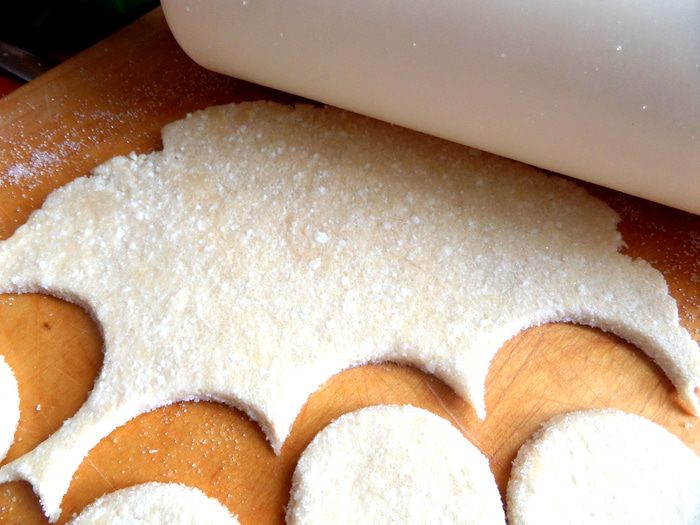 Макаем стакан в сахар или в муку и вырезаем кружочки.