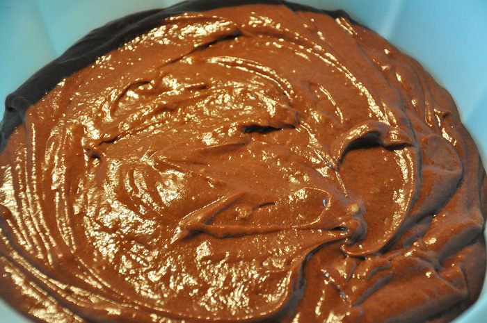Постепенно влить шоколад. Выпекать тесто в силиконовой форме при 180 гр около 40-45 минут. Моя форма - 24 см.