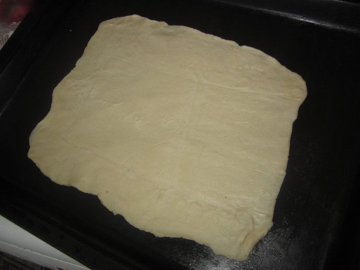 Тесто разделить на 3 части, раскатать пласты толщиной 3-4 мм, выложить на противень, наколоть вилкой и выпекать в духовке 200 С по 15 минут.