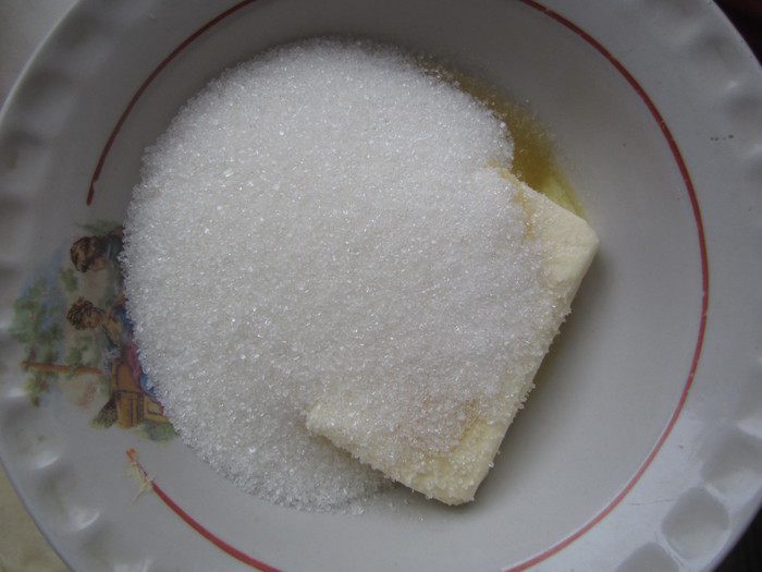 Размягченное масло растереть с оставшимся сахаром.