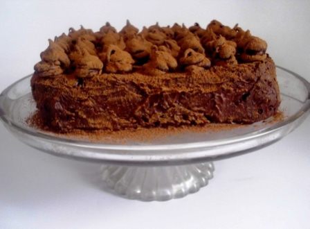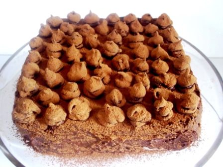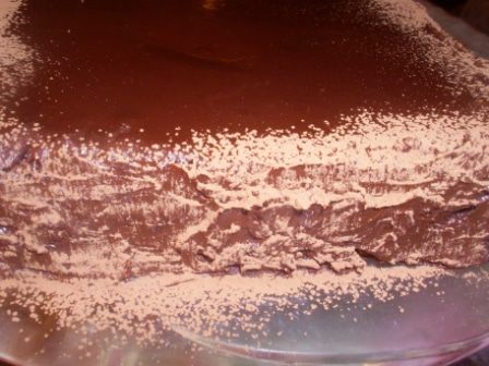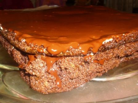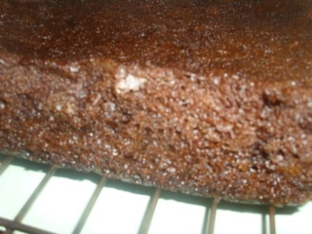 Муку смешать с содой, лимонной кислотой, ванильным сахаром и какао. Смесь просеять и в три приема ввести в тесто. Осторожно перемешать и вылить в форму (у меня квадратная 20*20см). Выпекать 15 минут при 200С, затем температуру снизить до 180С и выпекать ещё 25 минут. Проверить лучинкой, она должна быть сухой.