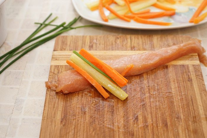 морковь почистить, нарезать брусочками толщиной примерно по 0,5 см, длиной сантиметров 8.