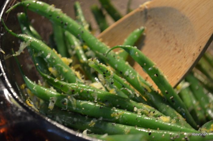 Прекрасный гарнир к общему блюду. Я использую французскую зеленую молодую фасоль.