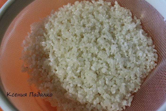 Рис хорошо промыть 5-7 раз под холодной водой, до тех пор пока вода не станет прозрачной. Затем промытый рис пересыпать в дуршлаг и оставить на 30 минут. Затем переложить в кастрюлю, залить водой и поставить на сильный огонь. Когда рис закипит, уменьшить огонь до минимума, накрыть крышкой и варить 10-15 минут. КРЫШКУ НЕ ОТКРЫВАТЬ в процессе варки!!!! Потом снять с огня и оставить еще на 15 минут. Крышку также НЕ ОТКРЫВАТЬ!!!!