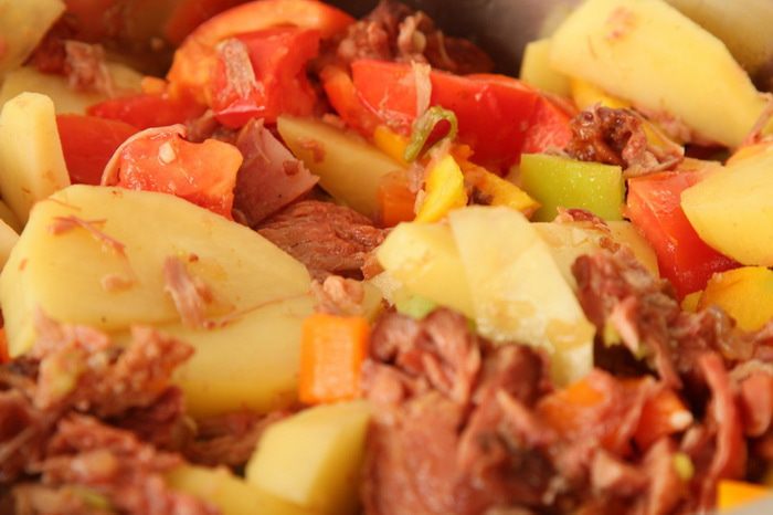 Немножко истории...Bogracs - это еда, которую готовили предки венгров из запасов: отваренной, порезанной, высушенной и перетертой в порошок говядины или конины, а также грибов, трав, кореньев. В переводе с венгерского слово "gulya" - обозначает стадо коров, а “gulyas” – пастух коров. Отсюда, “gulyas hus” (hus – мясо) или сокращенно “gulyas”, переводится как «м’ясо по-пастушьему». На протяжении многих столетий пастухи готовили мясо в своих знаменитых “bogracs” - казанах. Отсюда и происходит название блюда “bogracs gulyas” – гуляш приготовленный в казане. (использована информация с сайта Игоря Мелика)