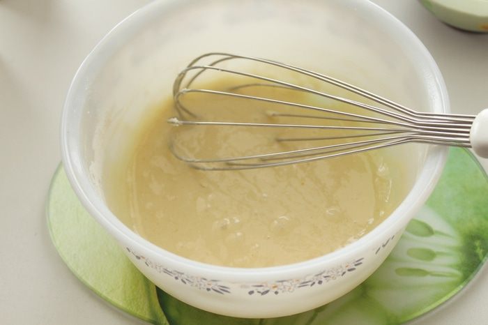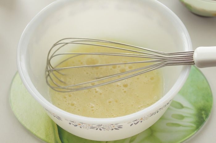 Яйцо слегка взбить венчиком с сахаром.