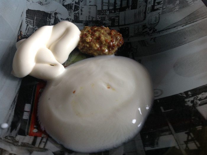 Для соуса: смешайте майонез, горчицу и йогурт.