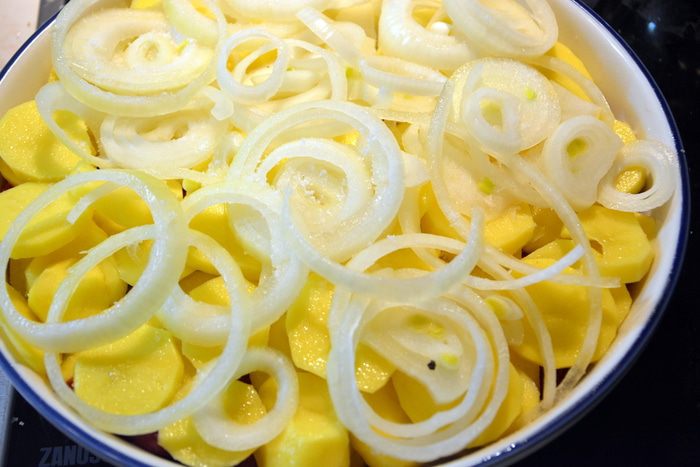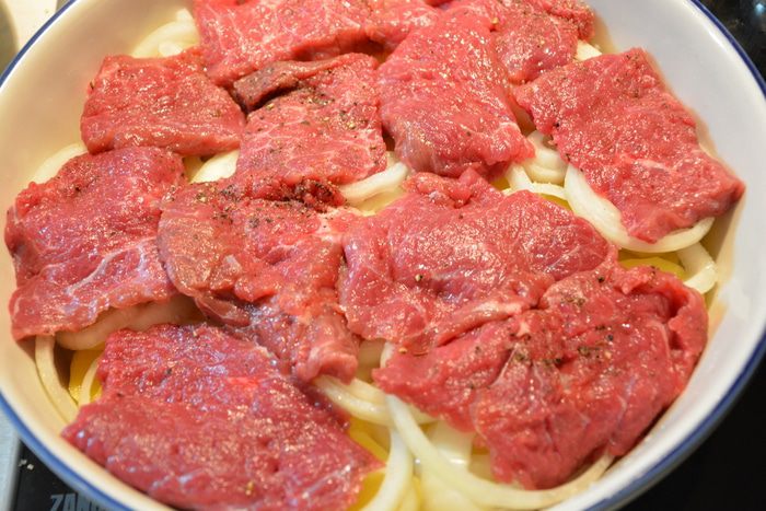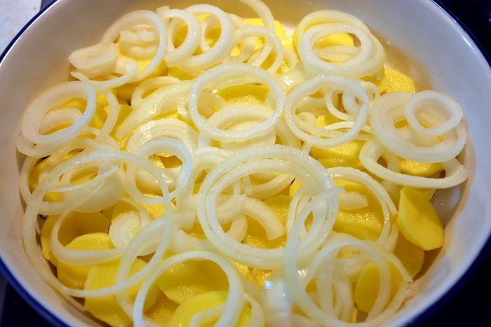 Сверху накрыть фольгой или силиконовым ковриком и запекать в хорошо разогретой духовке при 200°С 1 час. Снять фольгу/коврик и запекать до румяного цвета еще 10 мин. Готовность проверяем по картофелю.