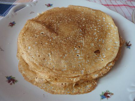 Яйца с сахаром и солью взбить. Добавить питьевую соду, муку и хорошо перемешать венчиком. Количество соли и сахара зависит от вашего личного вкуса и от того, с какой начинкой вы собираетесь использовать блинчики. Влить водку, всыпать просеянную муку и хорошо перемешать венчиком.
